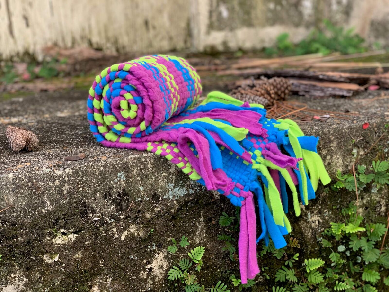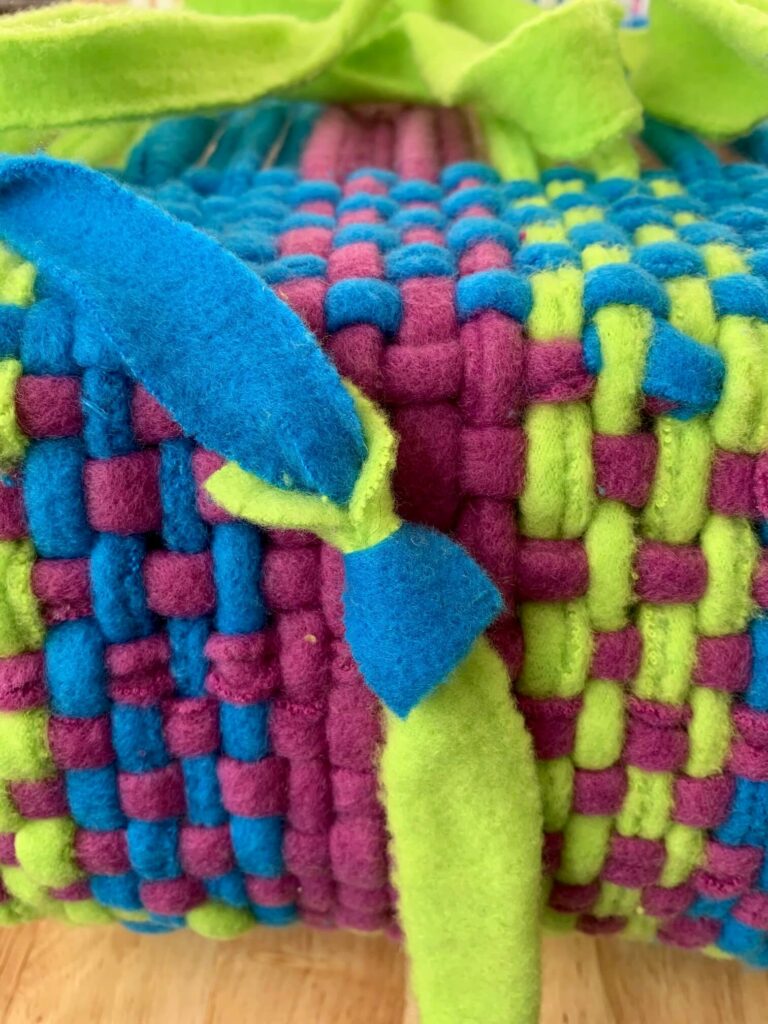 Now you can continue to weave, adding strips of fleece fabric as needed.