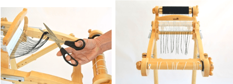 Cut the loops at the end of each set of threads. You are now ready to finish threading the heddle.