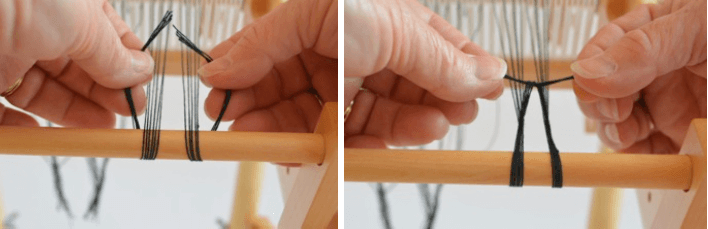 Pick up two small sections of the warp and bring them across the top of the Warp Helper.