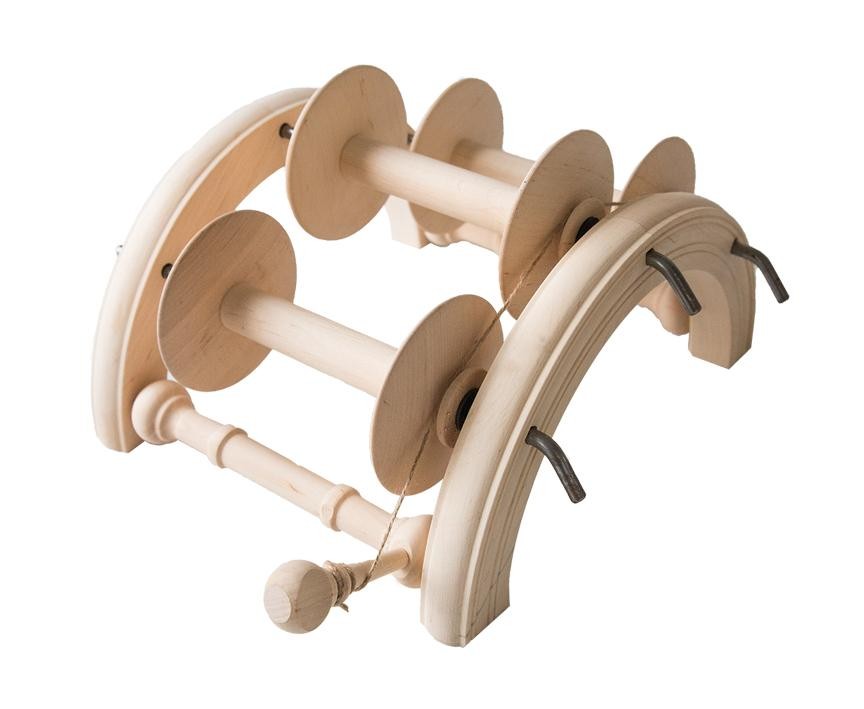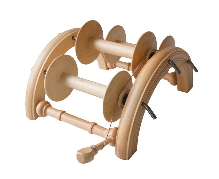 Our tensioned lazy Kate holds up to three bobbins and is designed to accommodate three regular bobbins or two jumbo bobbins, providing versatility for all your spinning needs.
